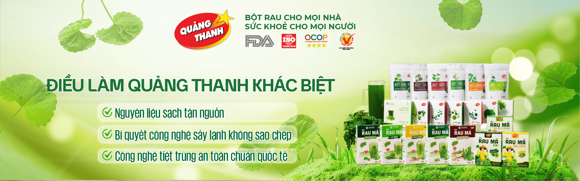 "Giữ trọn hương vị tươi mát và dưỡng chất từ rau má sấy lạnh nguyên chất"